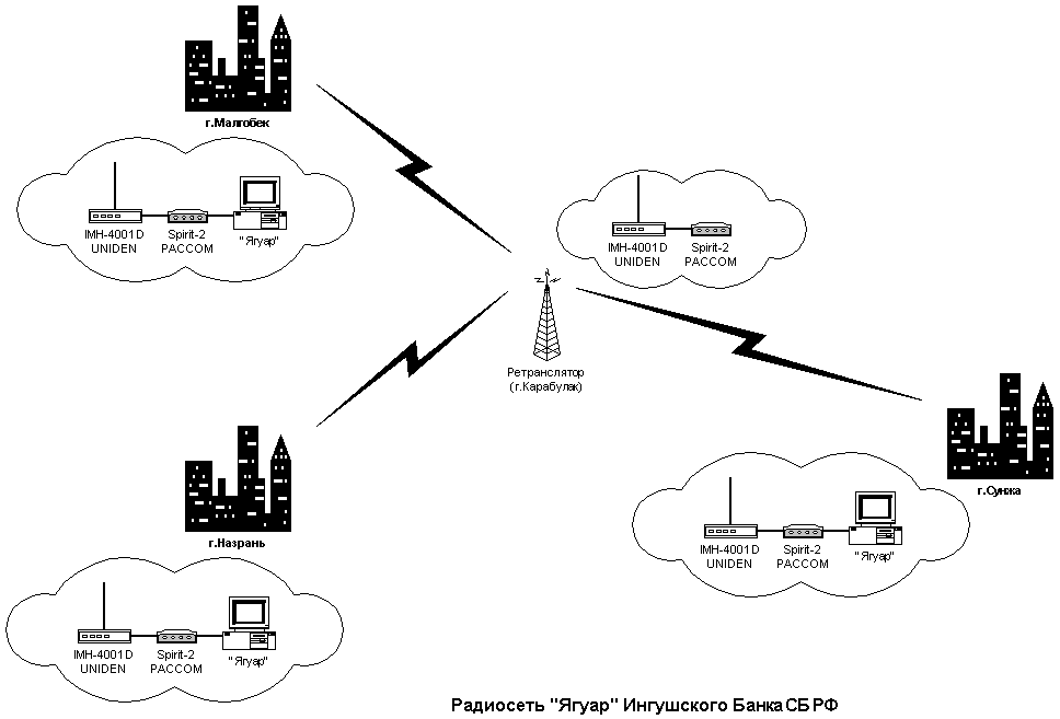 1,6–30 МГц (Коротковолновый диапазон). Системы работающие в этом диапазоне позволяют передавать данные и голосовые сообщения на расстояния до нескольких тысяч километров, что предоставляет уникальную возможность охвата значительных территорий, в том числе с гористым рельефом, что абсолютно невозможно для традиционных решений в диапазонах УКВ и СВЧ при соизмеримом вложении средств. Скорость передачи в КВ-системах относительно невысокая до 6 Кбит/с. Для реализации радиосистем передачи данных в КВ-диапазоне может быть использован комплекс "Barret 923", который производит компания Barret Communications Pty Ltd. В компексе "Barrett 923" реализованы адаптивные методы анализа радиоканала, что позволяет ему оптимально выбирать диапазон частот, протокол и скорость передачи данных.136–174 МГц — скорость передачи данных до 19,2 Kбит/с, дальность связи до 70 км, связь может осуществляться "из-за" угла и за горизонтом за счет искривления пути прохождения радиолуча у земли. Радиомодемы, работающие в этом диапазоне, используются для передачи файлов и электронной почты, позволяют организовать мобильный доступ в базы данных. Применяются в территориально распределенных сетях, в системах телеметрии и телеуправления, могут быть очень полезны для таких организаций, как ГАИ, служба скорой медицинской помощи и т.п. Интегральные радиомодемы, работающие в этом диапазоне частот, выпускаются такими фирмами, как Pacific Crest, Maxon,Young Design и др.НПЦ "Дейтлайн" разработал систему "Ягуар" для построения пакетных радиосетей передачи данных, которая уже в течение длительного времени успешно эксплуатируется территориальными отделениями Сбербанка РФ. Система "Ягуар" обеспечивает высокую надежность передачи данных, гибкость в управлении,возможность легкого наращивания сети на расстояниях до 300 км. Аппаратный комплекс системы может строиться на основе широкой номенклатуры FM-радиостанций и пакетных контроллеров. Специалисты компании "Дейтлайн" рекомендуют использовать трансиверы Uniden IMH4100 и контроллеры Paccom Spirit 2, что обеспечивает наилучшее соотношение цена/качество.
