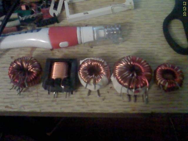 ферритовое кольцо с БП от ПК, размер: 27х13х11мм. - 32витка проводом 1мм. (на фото ниже), также пробовал мотать и на кольцо из расчетов Ромчика, размер: 20х11х7мм. - 36 витка (н фото тоже есть)