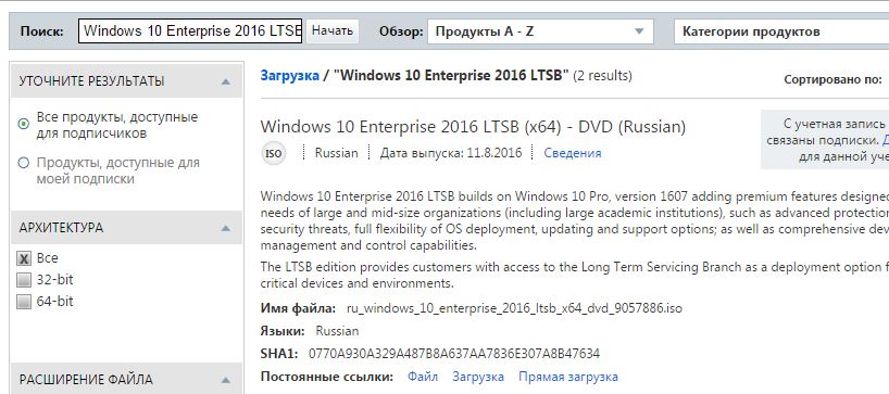 В дополнение нужно отметить, что данные образы (Microsoft Windows 10 Enterprise 2016 LTSB 10.0.14393 Version 1607) имеют идентичные SHA1 в сравнении с офф сайтом майков и уже есть первые результаты стабильности в работе:Сообщение от oveco Посмотреть сообщениеВладимир есть, оригинальные образы MSDN качаем отсюда: