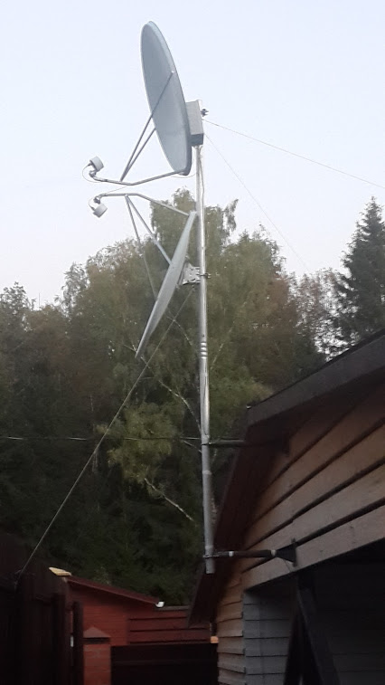 А это практическая реализация в лесной местности Московской области. Облучатели круговой поляризации 3g+lte.