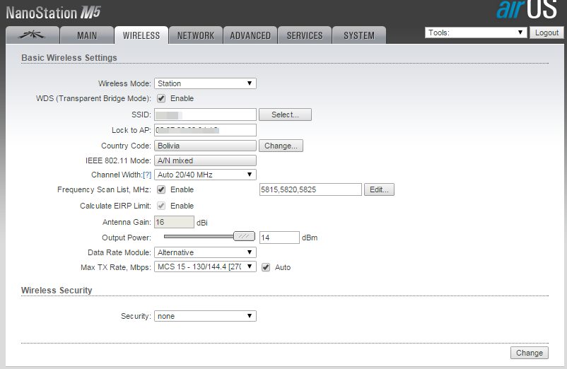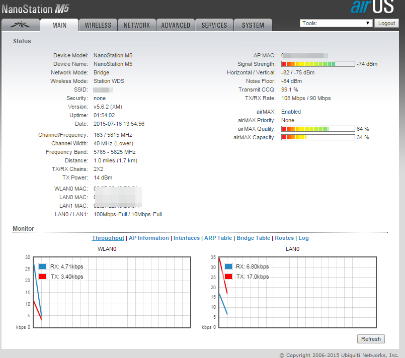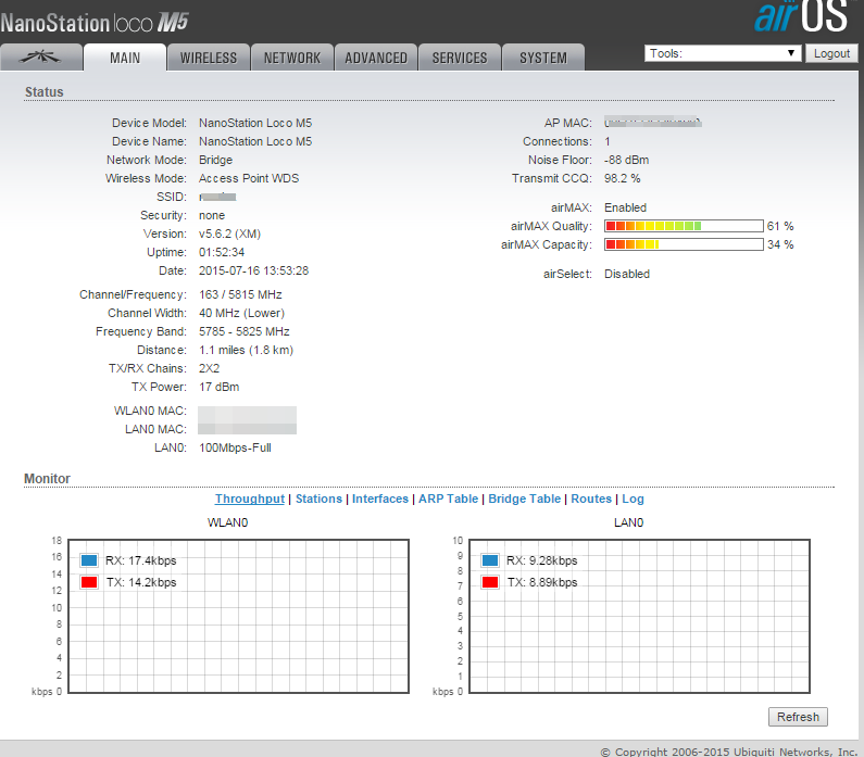 оптика Erisson от РТ -> NS M5 в режиме AP -> NS Loco M5 -> TL-WA701ND в режиме роутера дома.