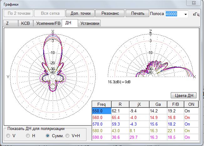 Антенна не оптимизирована, поэтому размеров не привожу. Процессор в ноуте слабоват и долго считает.
