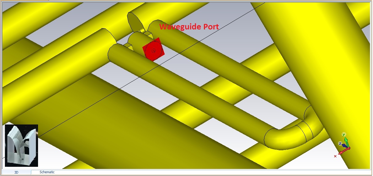 Волновой порт назначен на срез центрального кабеля. Укорочен максимально. При меньшей длине программа не запускается, при большей расчеты будут сильно отличаться от реальности. Длинные кабели CST плохо считает (думаю другие проги тоже).