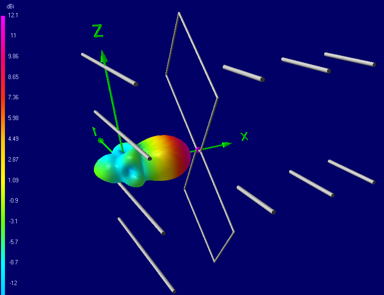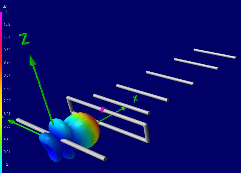 Спойлер (+/-) (4NEC2)Код:CE SY Rsrc=0.0382 SY radius=0.051 '0.001300-m AWG12 Element Size SY feed=0.5 'Optimizer found 0.5910825' 0.5, 4 SY y1=5.125 'Optimizer found 5.166532' 4, 12 SY z1=6.0 'Optimizer found 5.944172' 4, 12 SY z2=3.0 'Optimizer found 3.044278' 2, 12 SY RS=4.25 'Optimizer found 4.277427' 3, 25 SY RR=2.125 'Optimizer found 2.079695' 1.5, 5 SY YRod=10.0 'Optimizer found 10.0889' 10, 25 SY Rrod=0.125 'QICT, Quarter Inch Copper Tubing GW 1 13 0 feed 0 0 y1 z1 radius GW 2 10 0 y1 z1 0 0 z1+z2 radius GX 10 010 GX 20 001 GW 100 1 0 feed 0 0 -feed 0 Rsrc GW 264 33 -RS -YRod 5*RR -RS YRod 5*RR Rrod GW 265 33 -RS -YRod 4*RR -RS YRod 4*RR Rrod GW 266 33 -RS -YRod 3*RR -RS YRod 3*RR Rrod GW 267 33 -RS -YRod 2*RR -RS YRod 2*RR Rrod GW 268 33 -RS -YRod 1*RR -RS YRod 1*RR Rrod GW 271 33 -RS -YRod -1*RR -RS YRod -1*RR Rrod GW 272 33 -RS -YRod -2*RR -RS YRod -2*RR Rrod GW 273 33 -RS -YRod -3*RR -RS YRod -3*RR Rrod GW 274 33 -RS -YRod -4*RR -RS YRod -4*RR Rrod GW 275 33 -RS -YRod -5*RR -RS YRod -5*RR Rrod GW 291 33 -RS -YRod 0 -RS YRod 0 Rrod 'CENTER GS 0 0 0.0254 GE 0 LD 5 0 0 0 24900000 GN -1 EK EX 0 100 1 0 1 0 0 0 FR 0 29 0 0 623 12 RP 0 1 73 1510 90 0 1 5 0 0 EN