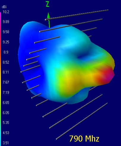 Если подвигаю на 20 см вперёд - усиление достигает 13.1 dBi @ 790