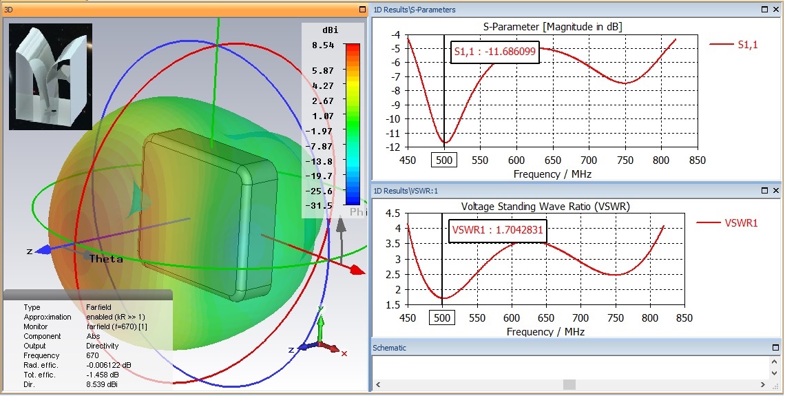 Усиление: 7.4; 8.5; 8.0 дби на 500; 650; 800 МГц соответственно. КСВ не более 4. Коробка, практически ничего не меняет.