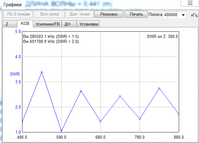 Я пробовал поиграться с размерами директора +/-, туда/сюда, 150 мм дают лучший результат, в диапазоне 700-800 МГц, 160 мм - наименьший КСВ в средней полосе. Можно еще попробовать высотой самого патча поиграться...