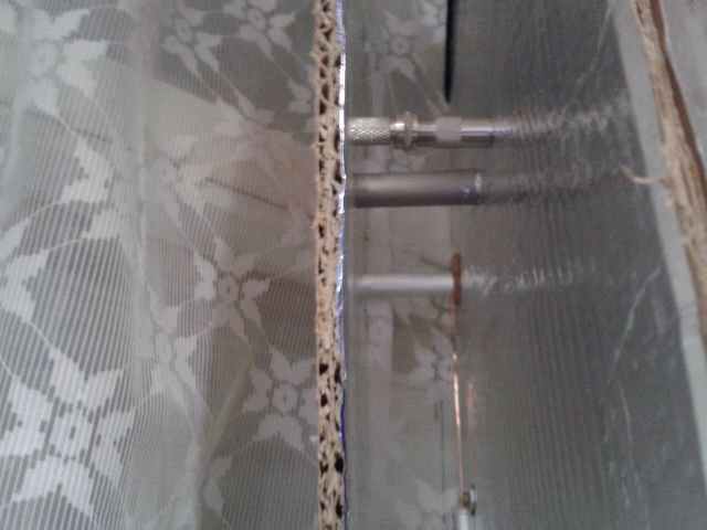 Я боюсь Вашу антенну не посчитать, слишком много неизвестных: картон гофрированный, фольга с неровной поверхностью и неровными краями, спички из неизвестной древесины, неизвестной влажности (картон тоже с влажностью не дружит), контакт стоек с фольгой, через картон не есть хорошо, центральная жила 1 мм, на расстоянии 4мм от рефлектора не создаст необходимой емкости, хоть в оплетке, хоть без, ну и так далее...