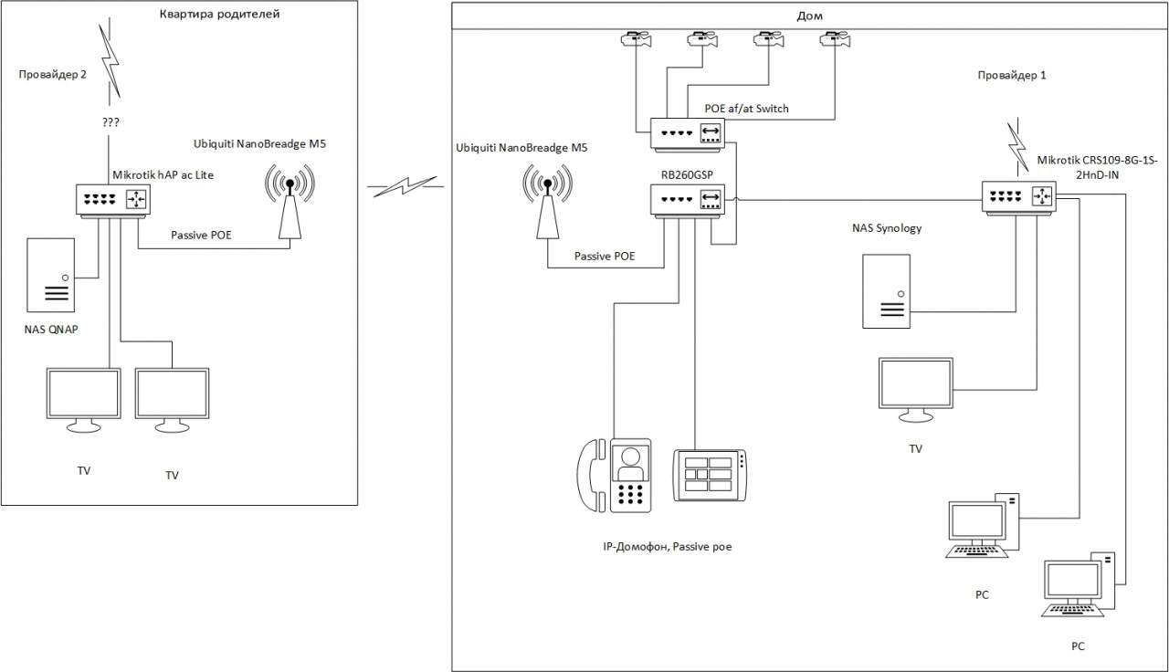 Нарисовал схемку, единственное - сейчас в квартире стоит обычный Dlink, но хочу поменять его на Mikrotik