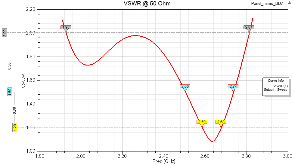Полоса по SWR<1.2: 2590-2680 MHz