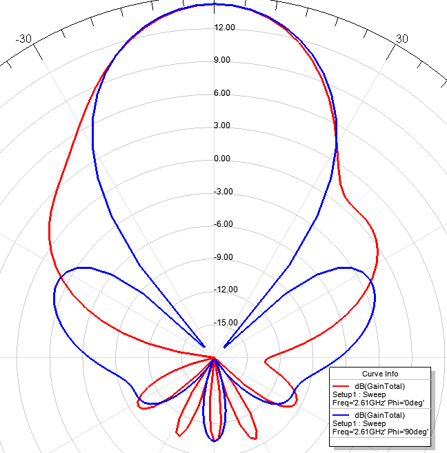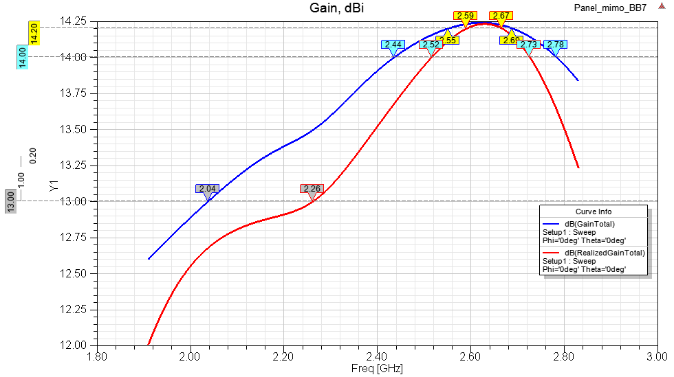 Полоса по 14+ dBi: 2520-2730 MHz