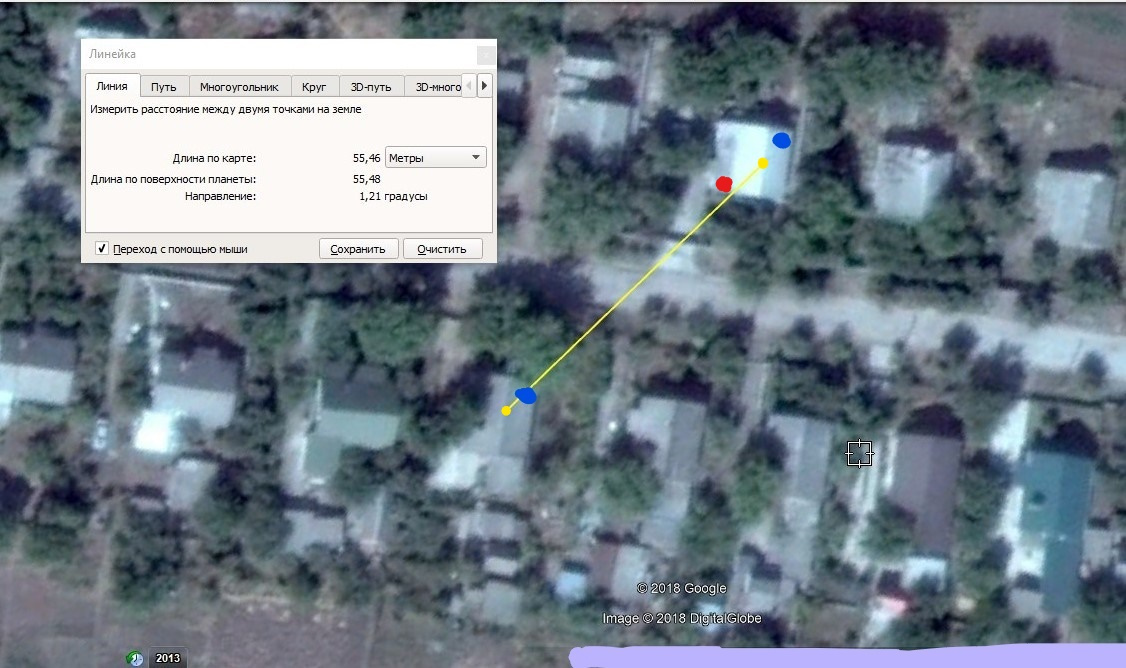 Рядом живёт друг в 55 метрах (это с центра его крыши до моей)