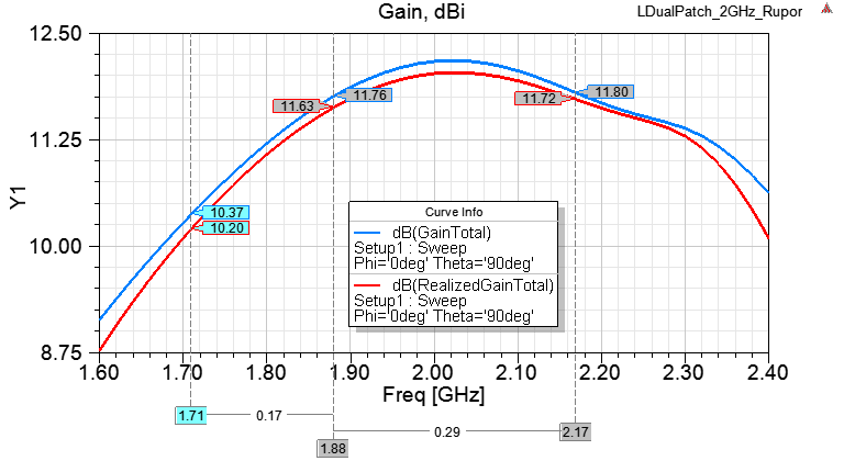 что касается, моего варианта двойной запитки, наверное есть возможность еще увеличить расстояние между патчем и экраном, поскольку моды там паразитные подавляются. и тем самым расширить полосу.