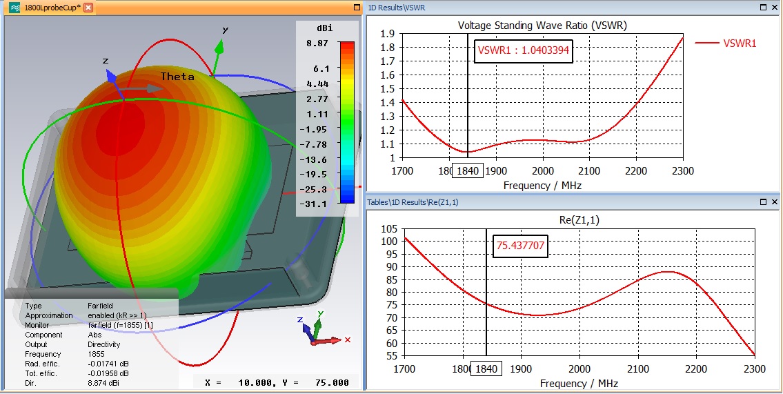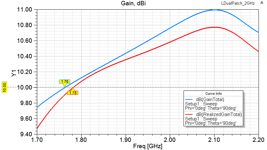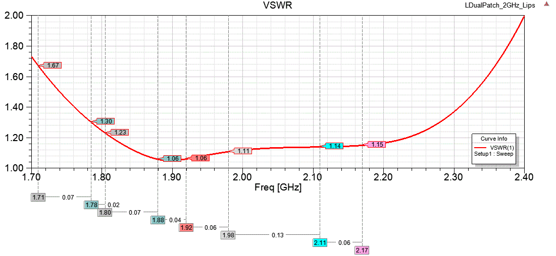 Широкополосный прямоугольный патч с перекрытием 2 диапазонов: 1800 (GSM/LTE) и 2100 (UMTS-3G/LTE)