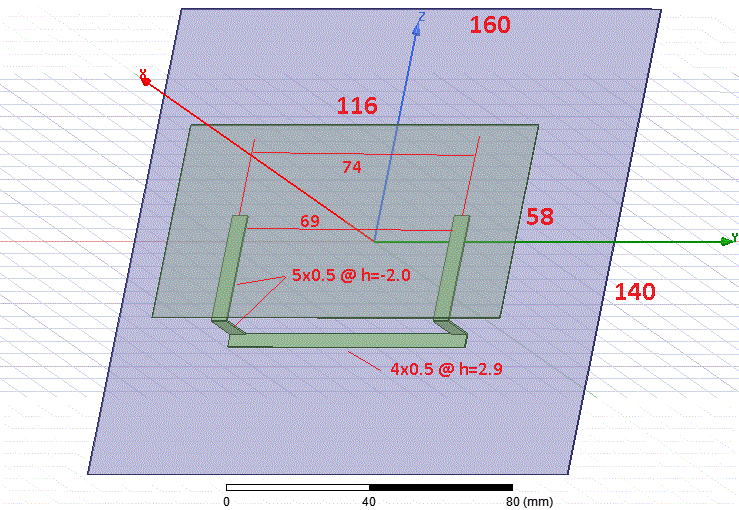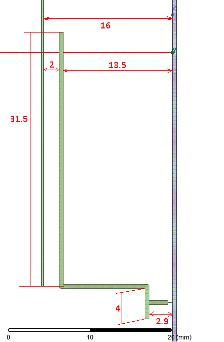 В модели HFSS были: патч 0.3 мм, рефлектор 0.5 мм и шунт 0.5 мм