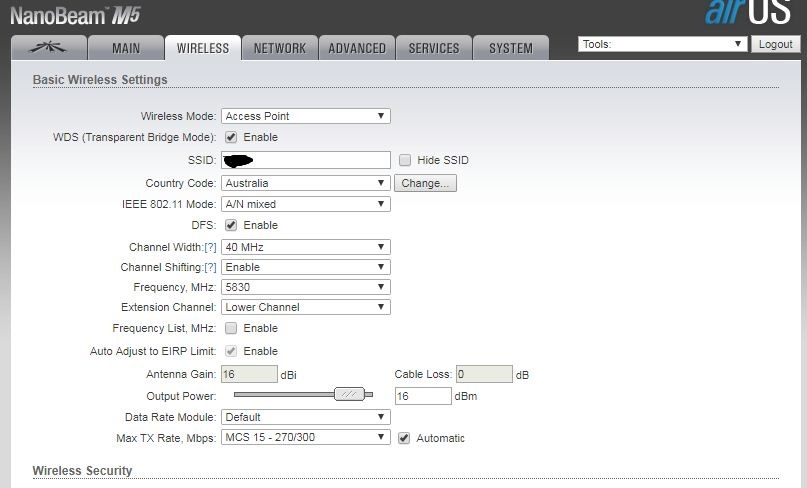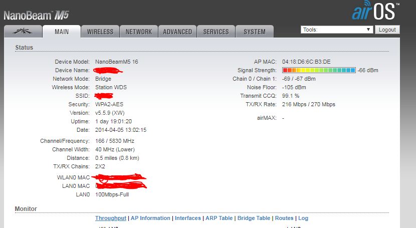 Встала задача транспортировать через этот канал 100 мбит интернета) Но получить хотя бы стабильные 80 не получилось, максимум 60-70, но в большинстве замеров 50-55. Менял ширину канала, дистанцию, мощность. Включал и отключал AirMax, бесполезно. Эфир на 5 ГГц не загажен, да и CCQ всегда по показаниям точек отличное. На коммутаторе со стороны интернет-шлюза стабильные 90-95 мб.с.