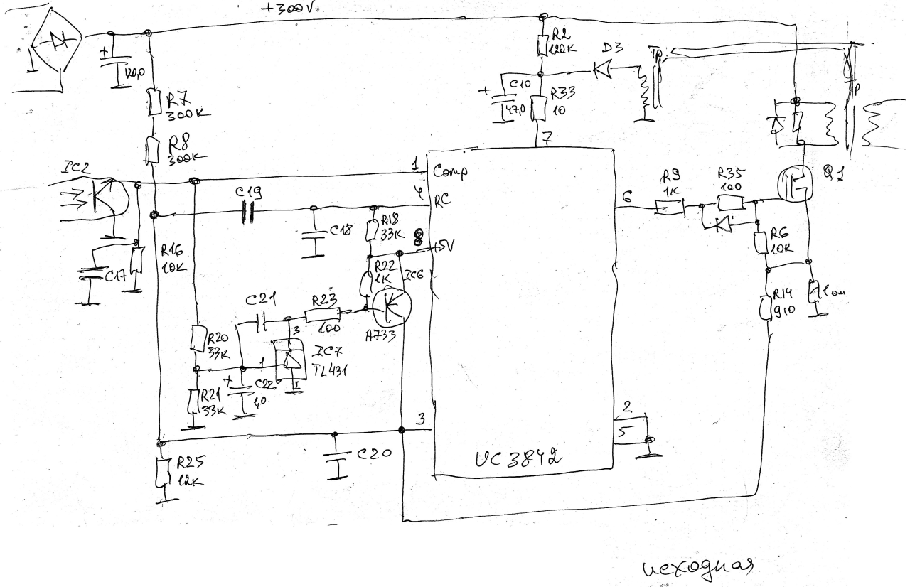 Начинаю проверять обвеску (TL431, оптопара, диод питания, обратную связь) – все исправно, но схема не работает.