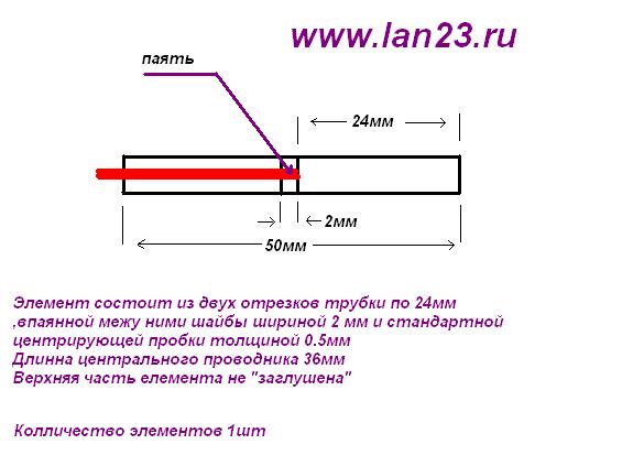 1) Согласующий элемент. Там кабель проходит внутри?нетСообщение от WinMustDie Посмотреть сообщениеТрубки не соединены между собой?нет оплетка паяеться к тойже трубкеСообщение от WinMustDie Посмотреть сообщение2) Запитка. Кабель проходит через 1 трубку, затем оплеткой припаивается ко второй,к второйСообщение от WinMustDie Посмотреть сообщениеи центральной жлой к третьей?смотрите внимательно чертежСообщение от WinMustDie Посмотреть сообщение3) Количество элементов. На первом чертеже указано количество элементов 15. Значит общее 17?изоляторы пойдут, трубку заменить водопроводной ПВХ.Сообщение от WinMustDie Посмотреть сообщение4) Изоляторы. Поскольку я не чувствую в себе сил припаять провод к трубке и не подплавить изолятор, решил наточить их из текстолита. Чем можно заменить фиберглассовую трубу?QUO NON ASCENDAM
