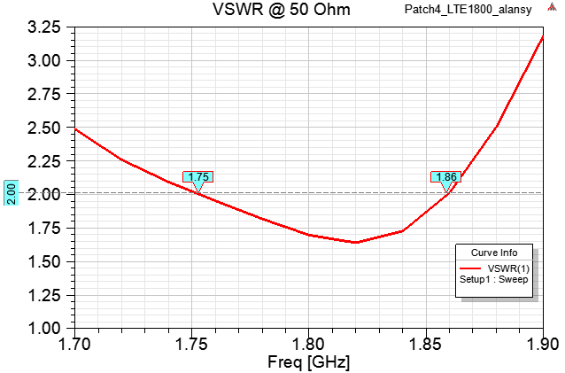 Решил применить полосковый трансформатор - появилась целая степень свободы, которая позволяет изменяя 2 размера (ширину и длину полоски) удерживать КСВ=1 варьируя материалами: