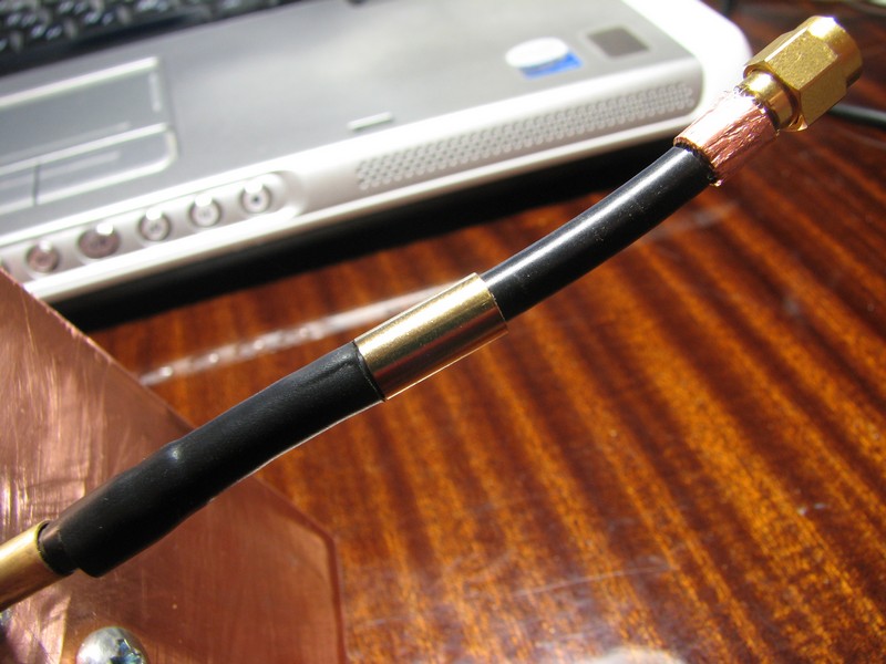 разъем SMA обжат не родным кольцом.. у меня нету клещей для обжима, пока не найду, решил не портить, обжал кусочком медного листа.. вроде крепко..