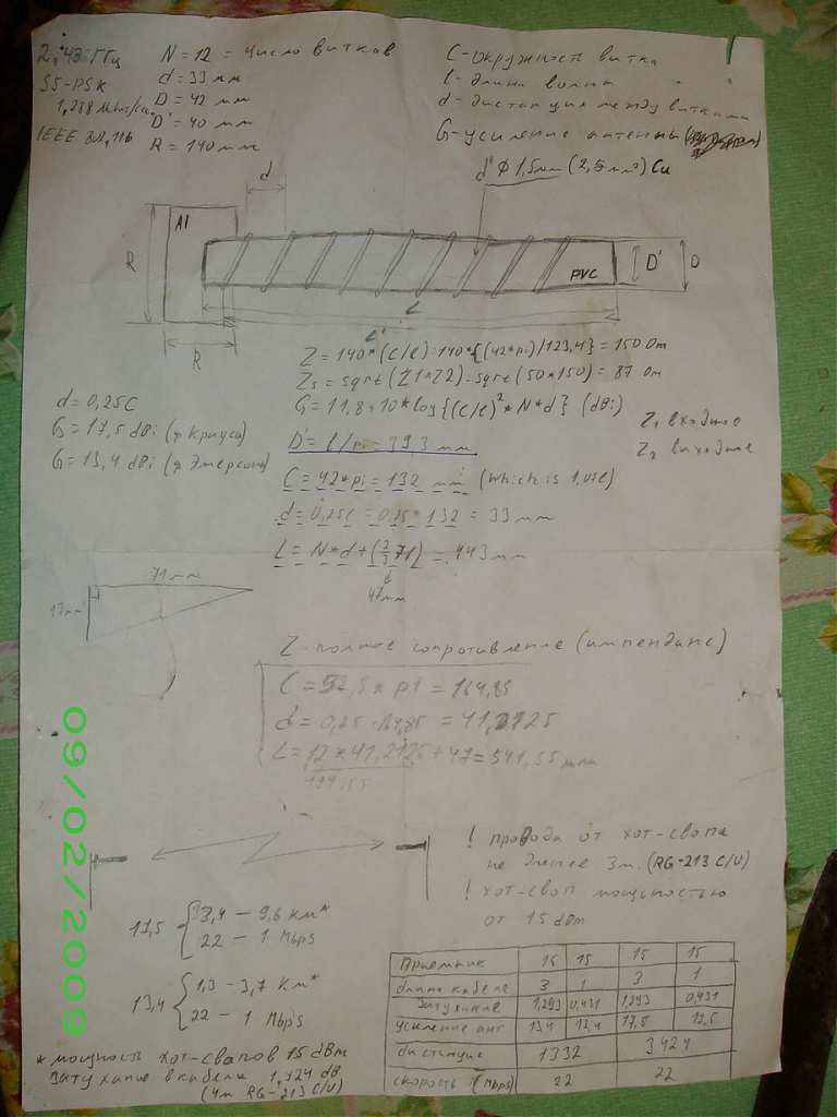 Собираю антенны Helix, перерасчитал на трубу 50мм, т.к. 40 не нащел.
