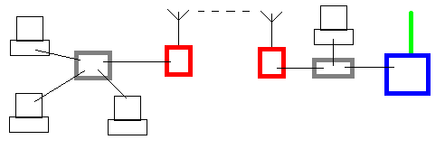 В доме (куда все это кидается): нужна точка + хаб. Точка уже есть DWL-2100 (перешита в BlueBox, можно вернуть старую), есть хаб (см. LAN.gif, зеленая линия - Inet).