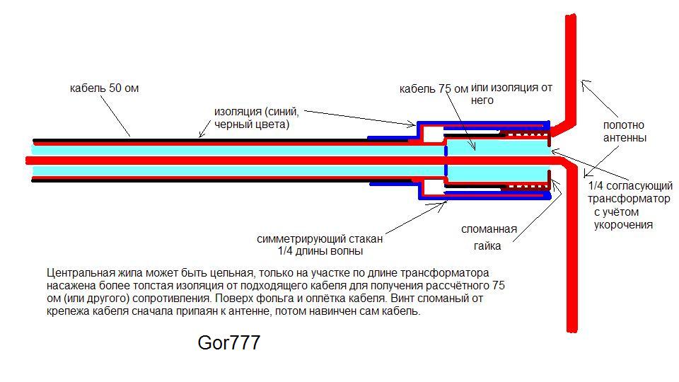 P.S. Я привожу вариант подключения кабеля к этой антенне: