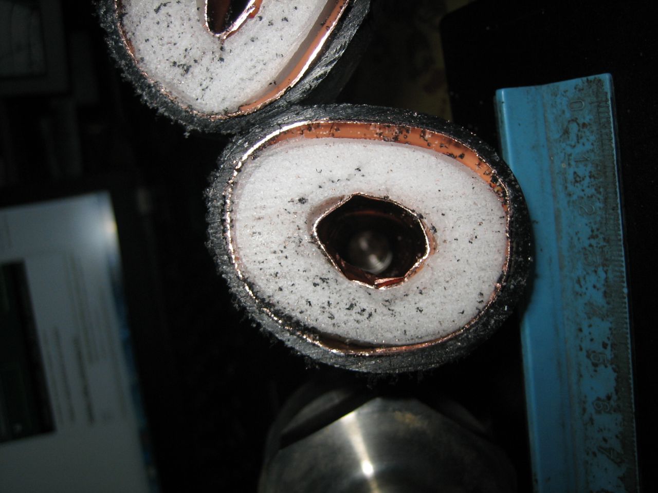 На выставке видел кабелюгу 12-15 см в диаметре, ЦЖ и экран медь, ЦЖ около 5-6 см в диаметре (труба) стоит на распорках по спирали. Так в него говорят закачивают воздух под давлением, чтоб если где дырочка, влагу не сосал и конденсат не скапливался.