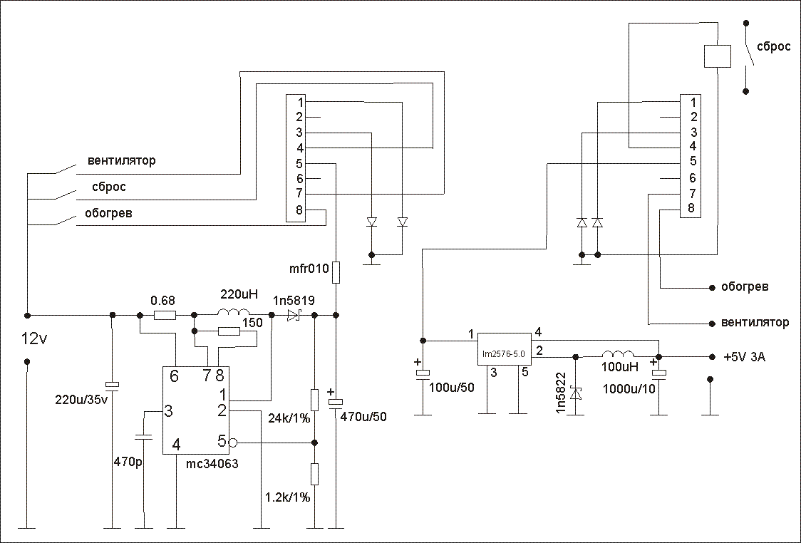 Перерисовал схемку для себя, в качестве обогревателя думаю ставить резистор 33 ома (при кабеле в 100 метров на токе 300мА падение 3 вольта) это вата 3 тепла.