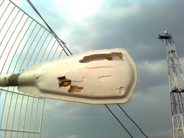 dr0n прислал мне фотографию побитого градом облучателя.
