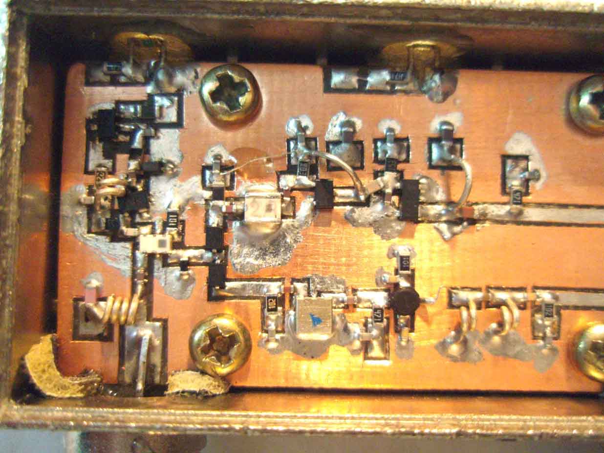 Печатку не выкладываю, нарисуете сами под свой корпус. Без навыков СВЧ монтажа повтарять не советую, лучше немного подождите, я подготовлю матерьял по поднятию мощности 2100АР до 500мВТ без перешивания, без замены штатного усилка!!!:yes: Все очень просто и под силу даже начинающим, надо только ровные руки, микроскоп, или мощную настольную лупу.