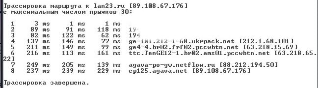 Трассировка маршрута к lan23.ru [89.108.67.176]