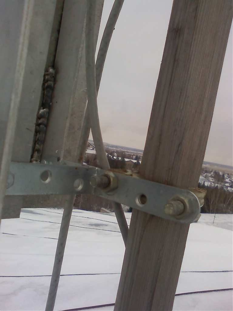 Обещанные фото... В качестве креплений используются хомуты глушителя от "жигулей" - 25 руб. и уголки из хозяйственного магазина - 5 руб. На фото всё видно... Антенны Amos9 инверт. Будут вопросы пишите...