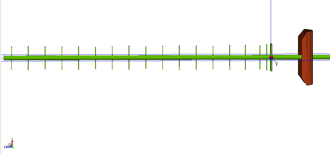 Диаметр директоров 2 мм, диаметр траверсы 12 мм( её общая длинна 900 мм). Запитка производится через четвертьволновый трансформатор с волновым сопротивлением 110 Ом.