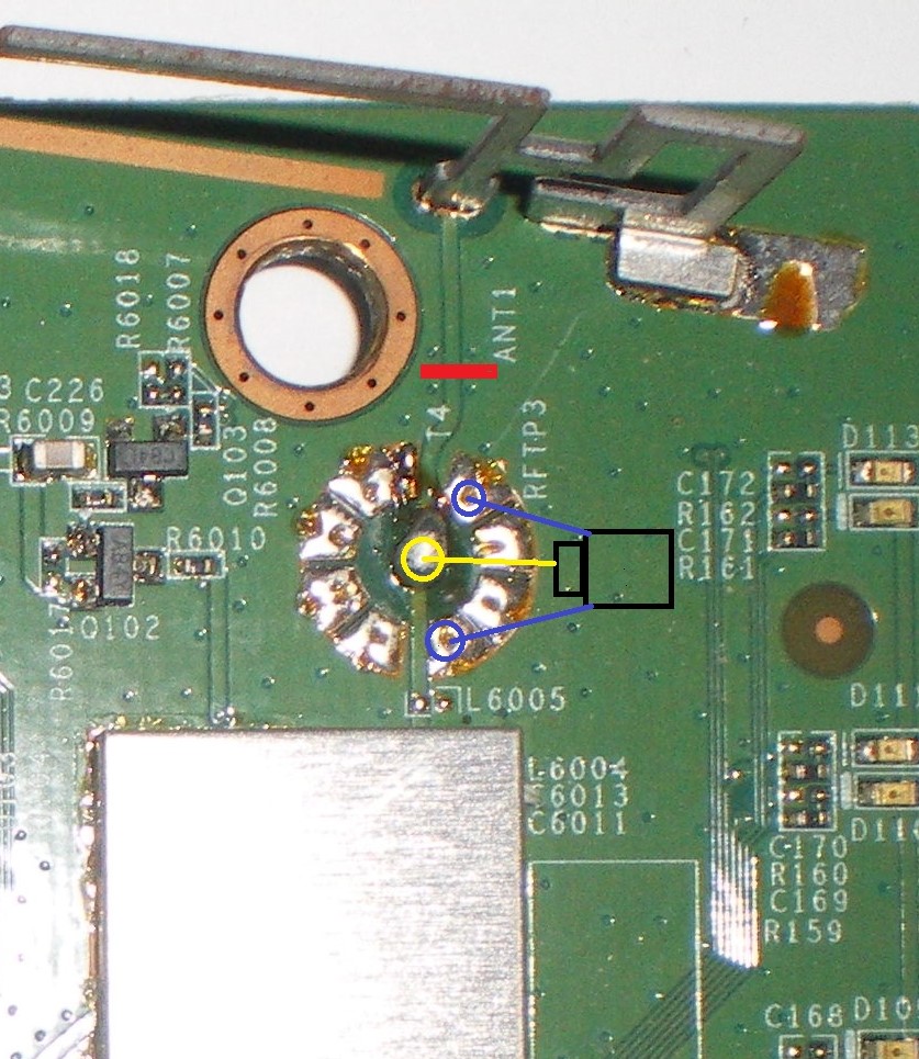Так на плате даже место есть для разъема. Только всё что левее снять нужно = 3 детальки.Сообщение от Sezario Посмотреть сообщениеЗнатоки помогите. Куда паять провода внешней антенны?[ATTACH=CONFIG]23167[/ATTACH][ATTACH=CONFIG]23168[/ATTACH]