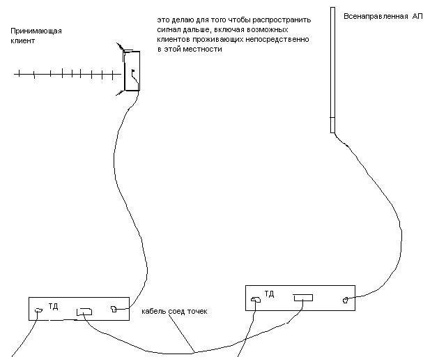 kuslik, с тобой согласен, но если человеку надо с неочень большого растояния притащить инет, то почему-бы не попробовать, только надо помнить что с 2 антеннами у точки снижается общий КПД(коеф. полезного действия), ето и моща падает, и производительность. при таком раскладе репитер с неё вообще неполучится, токо WDS или WDS+AP, ну или в альтернативных прошивках есть ещё P2MP(точка-многоточка), хотя есть и в родной но токо при управлении через Акову.