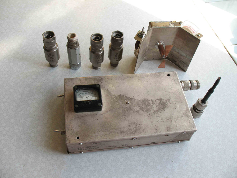 Вот схема индикатора поля для 2400/2483 МГц,с расширителем импульсов и двухрезонаторным входным фильтром.Даёт индикацию даже одного пакета импульсов от ТД общей длительностью милисекунды.Вся схема помещена в латунный корпус.Основное назначение СВЧ фильтра отсеять сигнал GSM1800. Добавил фото этого индикатора(в верхней правой части снимка,диполь похож на бабочку установлен после запорного L/4 симметрирующего стакана).