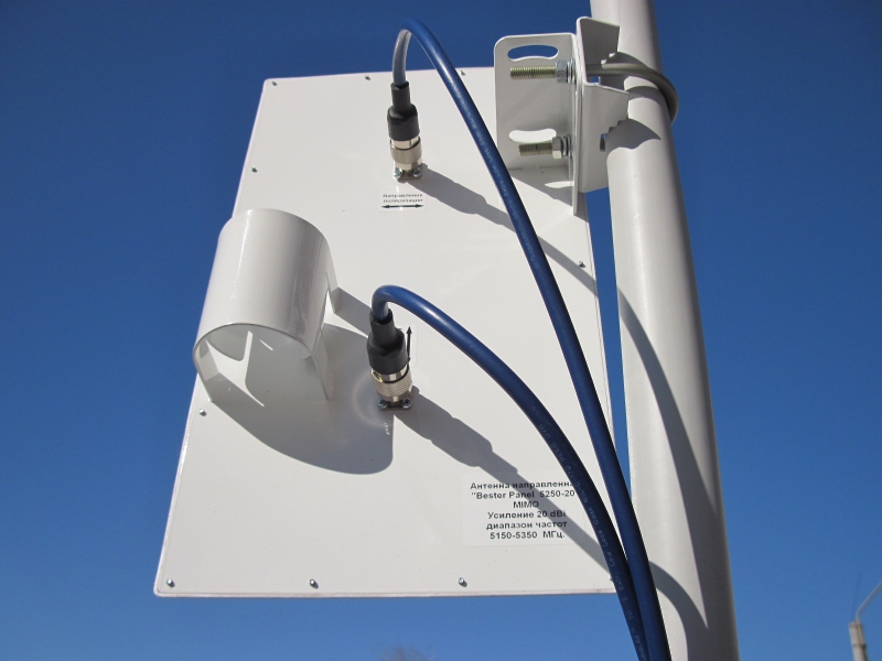 Антенна «Bester Panel 5250-20 MIMO» предназначена для эксплуатации в составе компьютерных сетей, сетей Wi-Fi, и других систем передачи данных стандарта 802.11n (2x2 MIMO) работающих в диапазоне частот 5150-5350 МГц.
