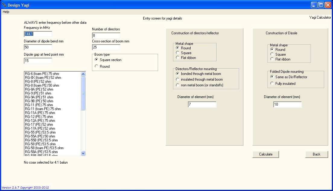 При проведении 3D моделирования видно, что характеристики антенны зависят не только от диаметра траверсы, но и от способа крепления директороов к траверсе. Поэтому подобные калькуляторы, думаю, дают ориентировочные значения размеров антенны.