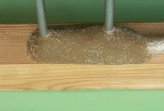 с песком. И заливается сначала всепроникающий слой смолы,