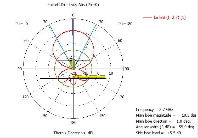 Вариант с коробочкой 110х110х50. Рефлектор сзади коробочки, батвинг внутри. Размеры от com0666, кроме h(4 mm). Стойки из оцинковки 0,5 мм. Все-таки, я остановился на таком отводе кабеля. Влияние на ДН есть, но только в одной плоскости.