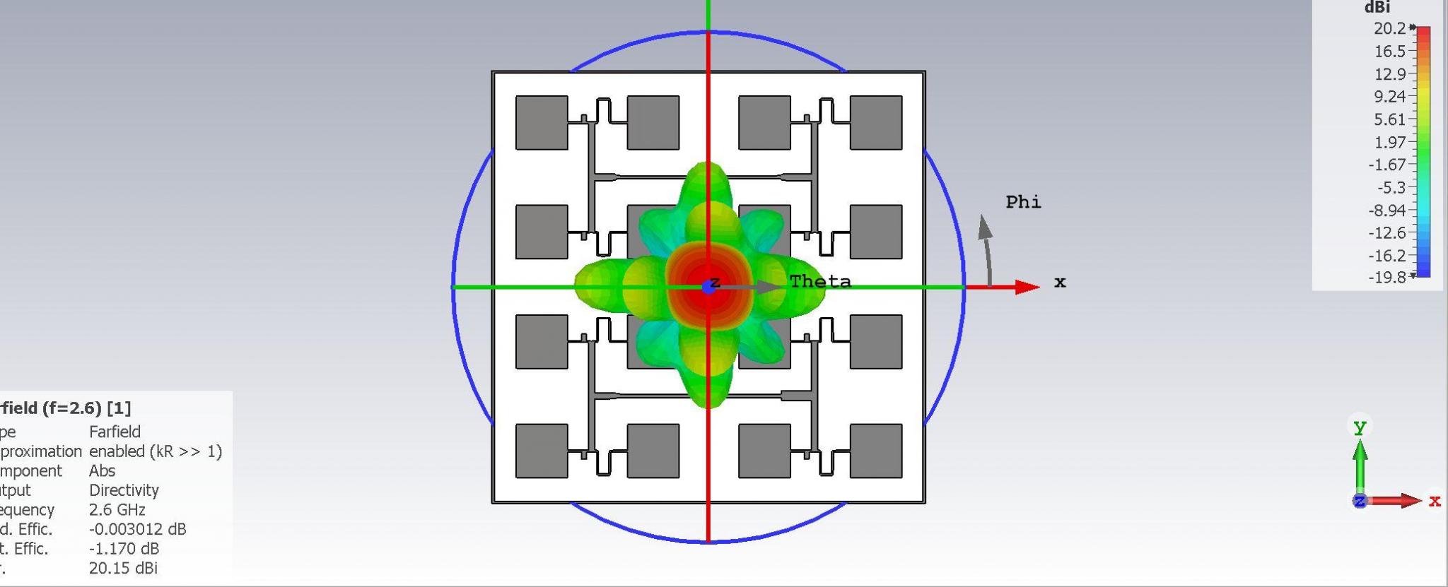 4 bt 4 патча должны дать максимум 21 дБи (ширина полосы боковых лепестков, vswr - РАЗНАЯ вещь для каждой геометрии) (4 bt 4 patches should yield 21dbi maximum (sidelobes bandwidth , vswr a DIFFERENT thing on each geometry))