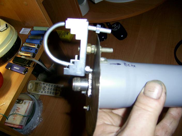 Но у меня была немножко по другому сделана запитка, не так как у автора. Скоро буду ещё делать - обязательно сфоткаю, реальная антеннка, реальное усиление(относительно габаритов), около 13дБи(по замерам на линке со слов установщика). Ниже фото в собранном виде. Разъём F-ка на задней стенке(рефлекторе).