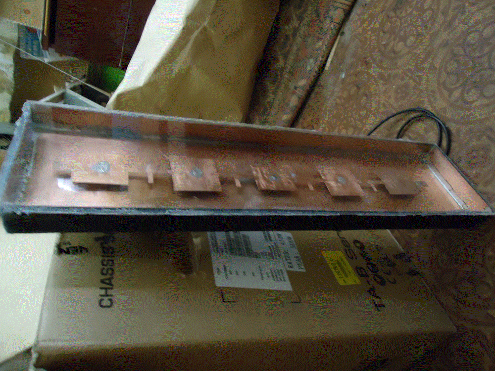 Перепробовав массу заводских антенн для базовой станции реши попробовать сконструировать секторную антенну. Выбор пал на Сектор 2.4 ГГц 16.88dbi 90гр. При повторении антенны я использовал полные размеры как указаны в чертеже также применил металлические стойки, как добавил в проект товарищ "GESS". Материалы я использовал следующие: текстолит фольгированный двухсторонний 2.5мм для изготовления рефлектора, для металлических стоек взял медный провод силовой 2.5 квадрата, цельный медный лист 0,35мм для изготовления патча, для запитки использовал кабель RG - 58 длиной в 1м. Также как и "GESS" кабель я ввел в антенну через медную трубку и это оказалось очень удобно в следствии чего я отказался от использования разъема под антенну. В крации сам патч я сначала нарисовал на медной пластине по линейки, затем простыми ножницами аккуратно вырезал по контурам, затем выровнил изгибы после резки. Небольшой геморрой оказался в припаивании патчей к медным стойкам 1. Выдержать расстояние до рефлектора в 9мм я между патчем и рефлектором прокладывал трубку диаметром в 9мм, а затем паял. 2. Когда я припаял весь набор патчей я обнаружил что рефлектор изогнулся по дуге и пришлось все распаять. После чего я сначала припаял боковые борта, а потом и сами патчи к стойкам и все пришло в норму. По окончанию сборки антенны я приделал к ней кронштейны из металлических уголков для крепления на мачте, закрыл переднюю часть антенны листом бесцветного оргстекла приклеив его на силикон и промазав швы и затем корпус антенны покрасил черной краской.