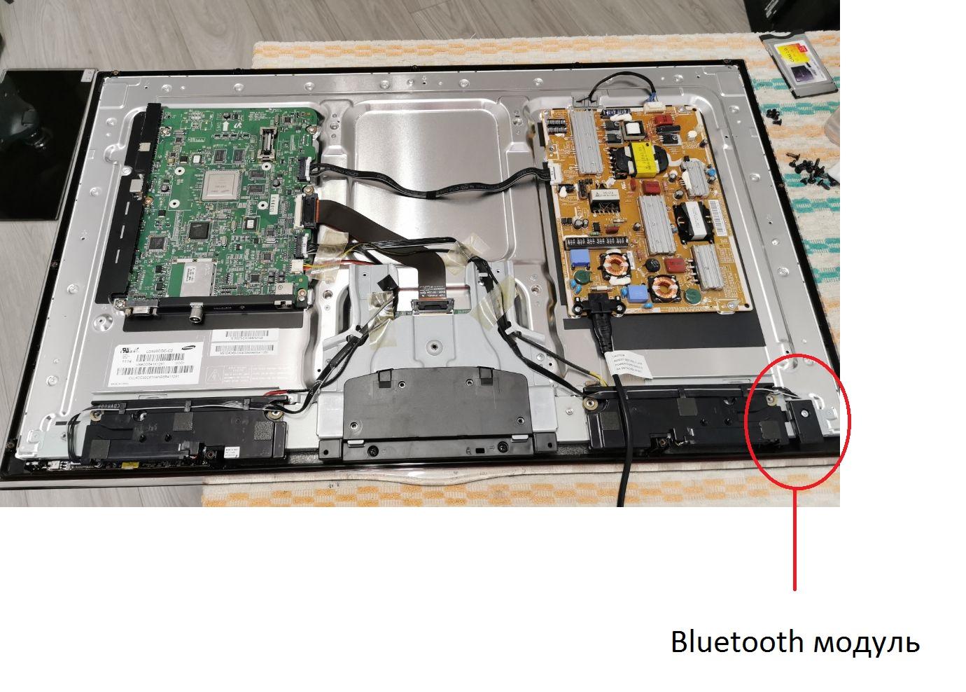 Попался телевизор Samsung UE32D6100SW 3D SMART TV Full HD с разбитой матрицей. В нем был установлен модуль блютуз.