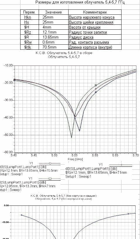 2.Внутренний диаметр не менее 48-50 мм. Критическое значение волновода для частоты 5100 МГц.(При облучении 1\4 L. штырём.) На патч элементе не критично, он практически сам обеспечивает необходимое усиление.