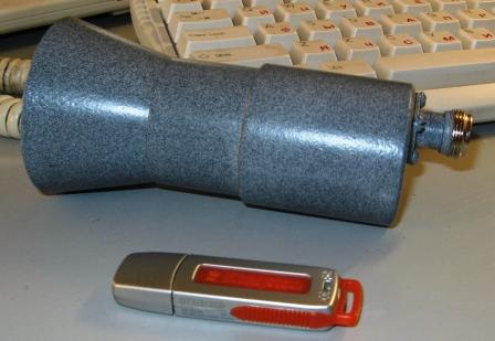 Может использоваться как самостоятельная антенна. К.У ОКОЛО 10 дБ. Поднять усиление можно удлиняя конус. Для тарелки это не нужно. Потенциально на стандартных точках 50-100 мвт. 54 мегабайта и таких антеннах работать должно 2-3 км.
