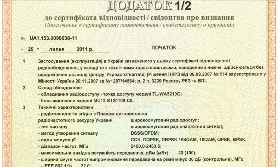 Список оборудования tp-link, сертифицированного на территории Украины