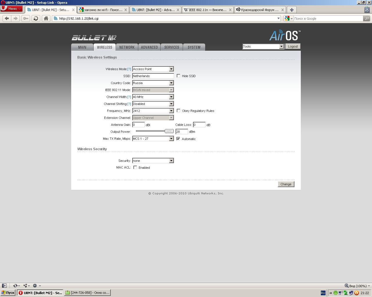 есть точка доступа bullet M2HP. В настройках функция изменения стандарта неактивна. Как ее сделать активной?