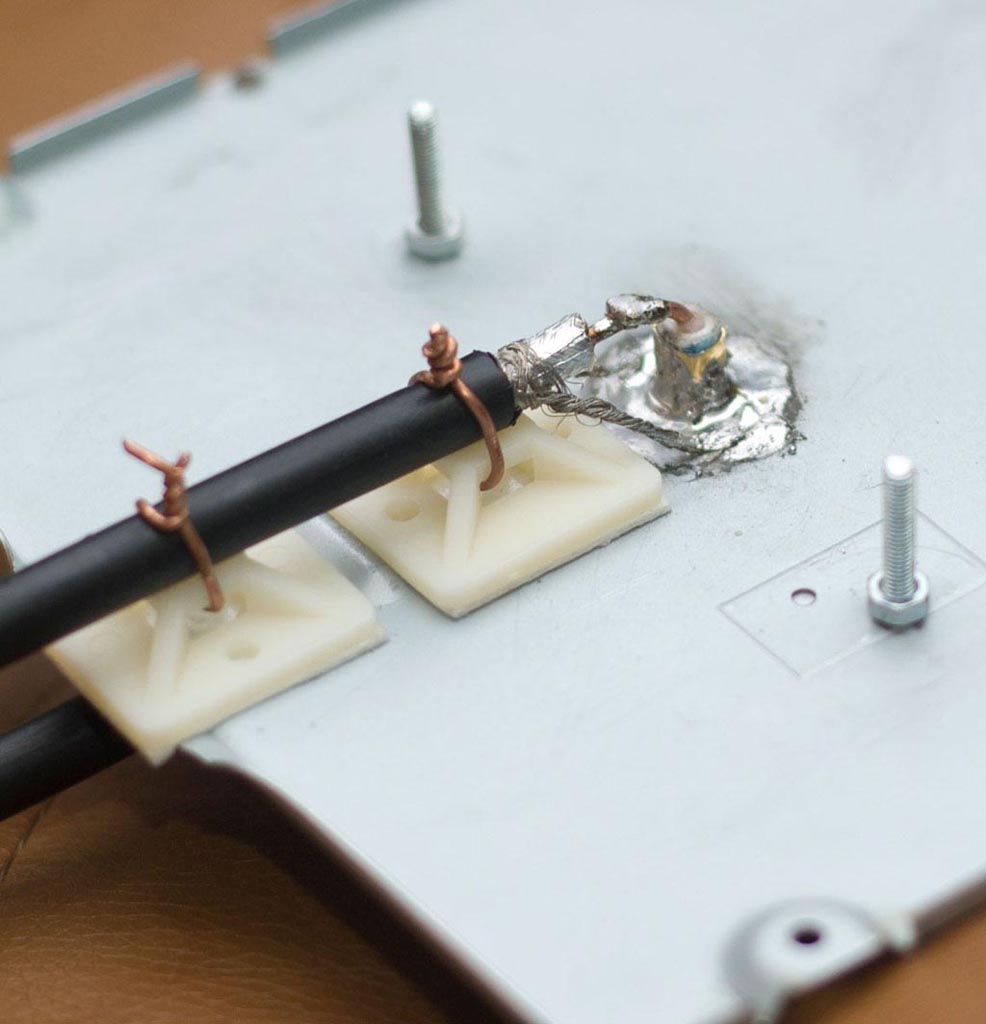 Из вашего фото. Вы разрезали путь токам В.Ч. Оплётку можно совсем не припаивать. Это только механическое крепление данного кабеля, на наших частотах.